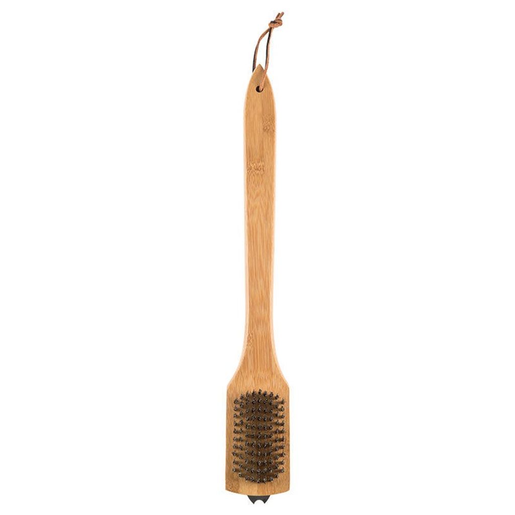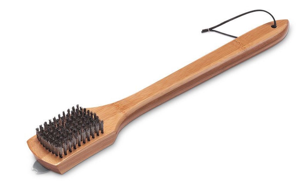 Webers grillborste 6464 är en grillborste med ett skaft tillverkat i bambu med en praktiskt skrapa monterad i toppen.
