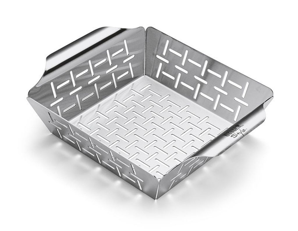 Sauterade, blandade grönsaker, smakrika lökar och morötter, bakade fyllda tomater eller kanske sparris inrullade i bacon! Det finns många olika möjligheter om du vill grilla tillbehör till din läckra stek eller biff – utan att grönsakerna blir alldeles brända eller slaka och tråkiga. Med grönsaksformen från Weber Style™ får du nämligen undan råvarorna något från det heta grillgallret, och hålen i sidorna och botten gör att vätskan från grönsakerna försvinner. Den ger dig fler möjligheter vid grillen, så att du verkligen kan briljera och visa att du är en äkta backyard hero!