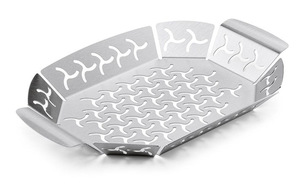 Sauterade, blandade grönsaker, smakrika lökar och morötter, bakade fyllda tomater eller kanske sparris inrullade i bacon! Det finns många olika möjligheter om du vill grilla tillbehör till din läckra stek eller biff – utan att grönsakerna blir alldeles brända eller slaka och tråkiga. Med grönsaksformen från Weber Original™ får du undan råvarorna något från det heta grillgallret, och hålen i sidorna och botten gör att vätskan från grönsakerna förångas. Den ger dig fler möjligheter vid grillen, så att du verkligen kan briljera och visa att du är en äkta backyard hero!