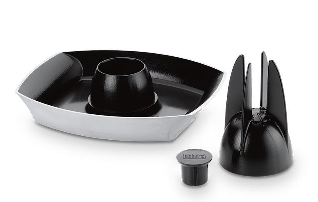 Kyckling i form har kommit att bli en modern BBQ-klassiker, och med den patentskyddade kycklinghållaren från Weber Style™ är det extra enkelt att skämma bort gästerna med en saftig och otroligt smakrik kycklingstek. Häll öl, cider, fond eller annat i fördjupningen i mitten, placera kycklingen ovanpå och låt grillen sköta resten av jobbet. Vätskan håller kycklingen saftig, och antalet möjliga variationer är oändligt. Kycklinghållaren från Weber Style™ bjuder också på ännu fler möjligheter. I botten av själva hållaren finns nämligen plats för riktiga trollerier på grillen. Lägg exempelvis lök, morötter eller potatis i botten under tillagningen, och vips har du ett läckert tillbehör till köttet! Du kan också använda hållaren för att tillaga en snabb omgång nachos med ost och salsa före middagen eller baka brownies till ett helt sällskap och ge dina gäster en unik matupplevelse. Möjligheterna är oändliga – som alltid med grillning!