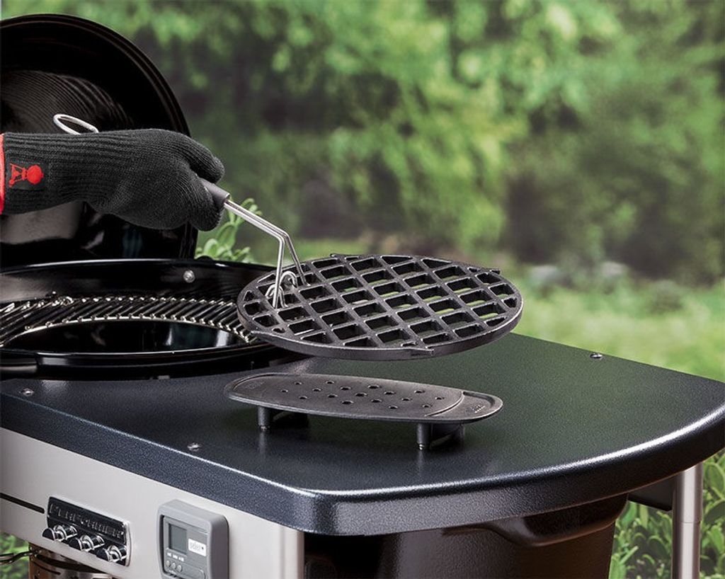 Webers Gourmet BBQ System grillgaller har gångjärn som ger dig möjlighet att enkelt lägga till bränsle, omfördela briketter eller fylla på med rökflis, allt med enkel användning av din tång. Oavsett om du grillar en Low-and-Slow chiligryta eller röker en hel kyckling, kan du lita på att detta grillgaller kommer att göra grillningen till en enkel och bekymmersfri upplevelse.