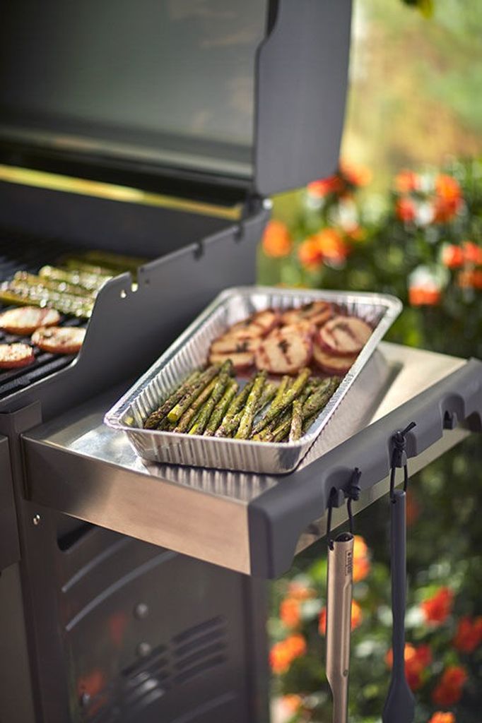 Potatisgratäng, lasagne och goda gryträtter har kommit att bli moderna klassiker på grillen, och med de stora droppformarna från Weber Original™ är det enkelt att lyckas vid grillen. Även fisk, skaldjur och grönsaker är smidiga att hantera i droppformarna, eftersom råvarorna kommer upp en aning från grillgallret. Du kan också använda formarna till att lägga din stekhållare i, så att saften och smaken från köttet droppar ned i formen och ger dig en perfekt grund för en god sås. Du får mängder av möjligheter vid grillen genom att använda droppformarna – och dessutom slipper du tänka på rengöringen efter en trivsam grillkväll.