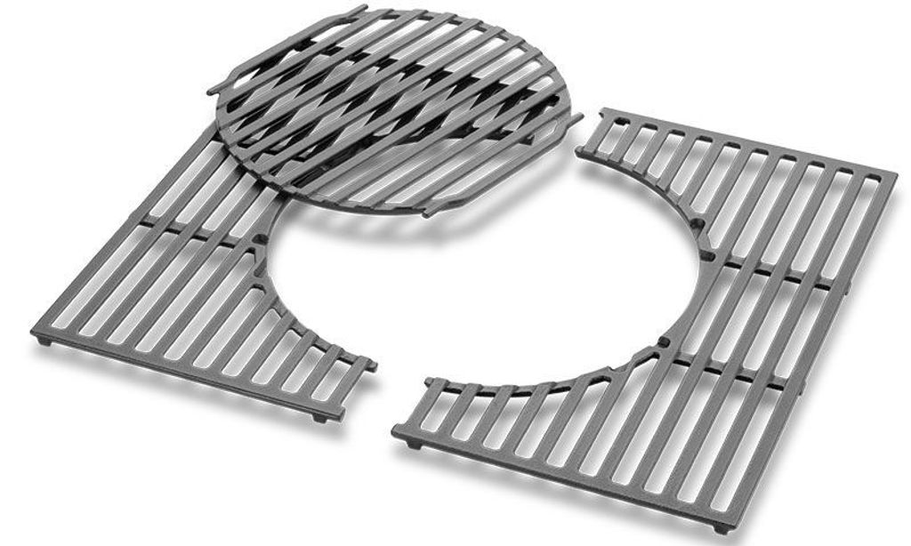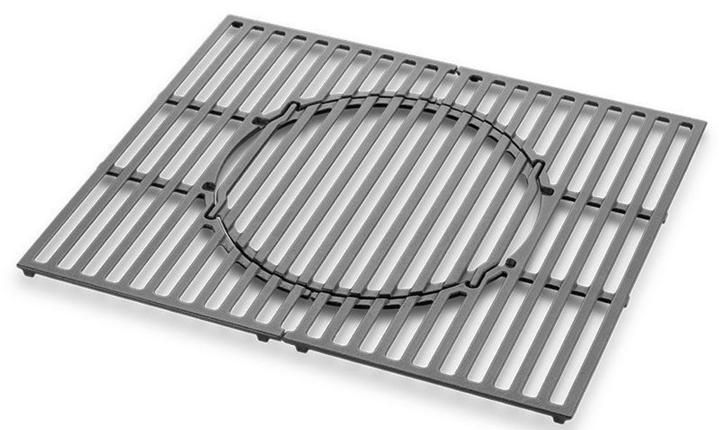Weber gjutjärnsgaller i två delar med uttagbar sektion i mitten för Webers GBS system.