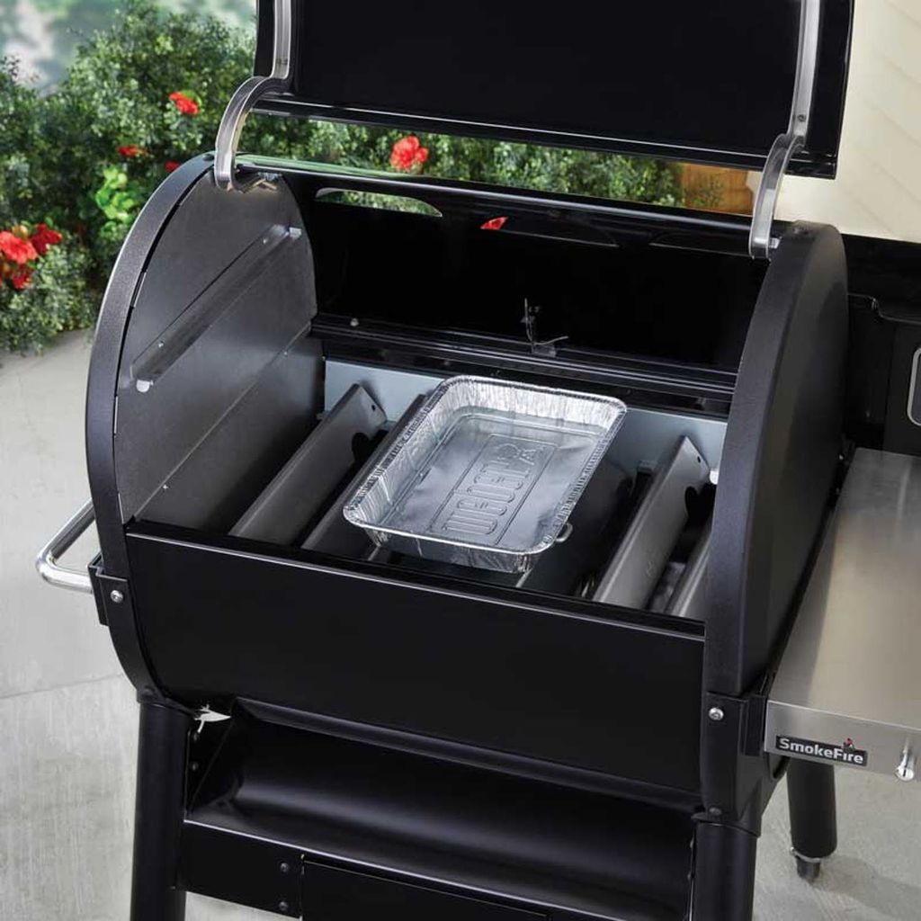 Wet Smoke Kit ger mer röksmak genom att tillföra fukt till värmen. Speciellt utformad för att placeras under grillgallret och tar inte plats från grillytan, samt dubbelfunktion – samlar upp fett och bidrar till enklare rengöring.