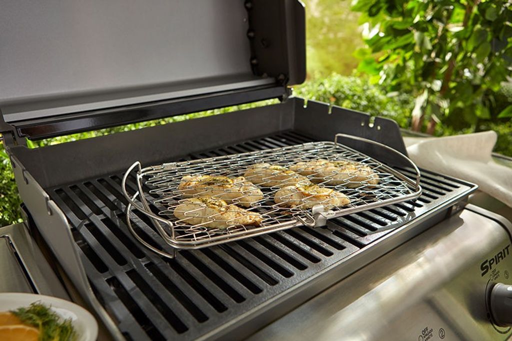 Utöka din grillutrustning med en Weber Style™ Grönsakskorg. Här kan du tillaga alla möjliga typer av grönsakstillbehör, så att du kan imponera på gästerna med läckra tillbehör till fisken. Sautera blandade grönsaker, rosta sparris inrullade i bacon eller laga bakade, fyllda tomater – utan att grönsakerna bränns. Superläckert!