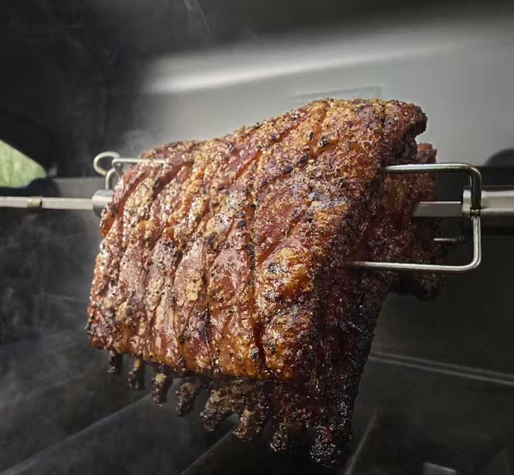 Används för att långgrilla hela köttstycken som kyckling, stekar eller fläskfilé direkt på grillen. Idealisk för Weber Genesis® 400-serien och Searwood® XL-träpelletsgrillar där du vill uppnå jämn tillagning, krispig yta och maximal saftighet.