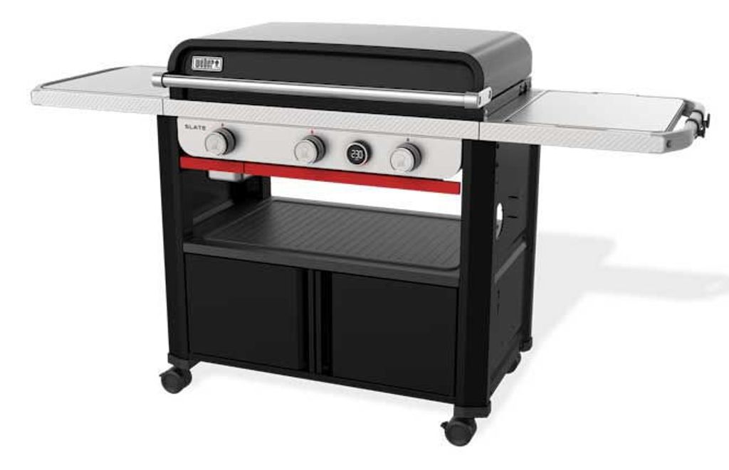 Weber SLATE GPD 76 cm Premium stekbord erbjuder jämn värme över hela ytan, når över 260 °C och har en digital temperaturdisplay. Perfekt för att tillaga hamburgare, fisk, wok och grönsaker på en klibbtålig porslinsemaljerad häll.