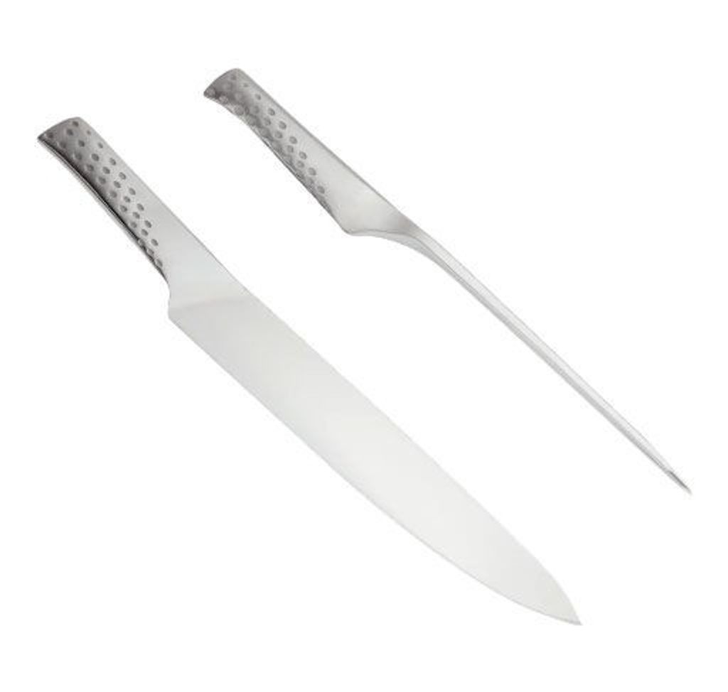 Skär upp grillköttet som ett proffs och gör dina ansträngningar vid grillen rättvisa. Kniven och gaffeln i det eleganta deluxe-tranchersetet är tillverkade i rostfritt stål och utformade för att ge dig bästa möjliga grepp och vassa snitt – så att du kan skära alla typer av kött i jämna, snygga skivor.