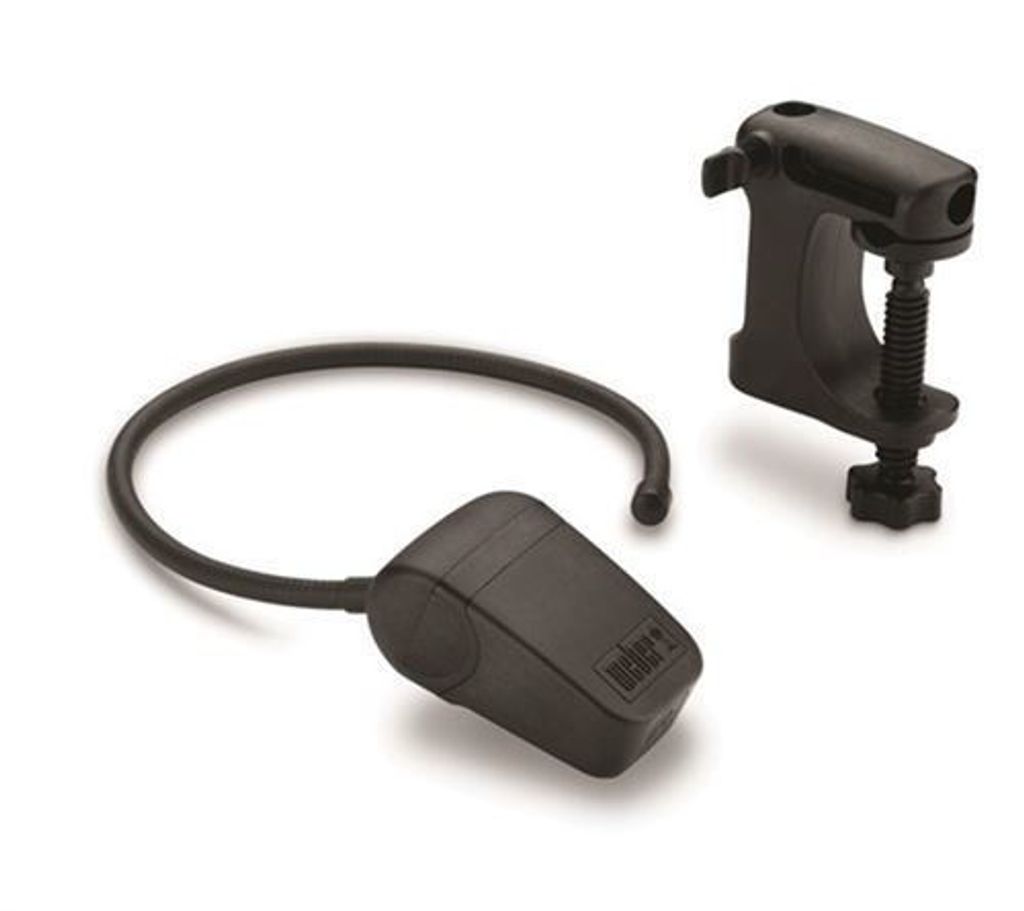 Weber universalbelysning med flexibel slang för att enkelt ställa belysningsvinkeln. Belysningen ger dig ett behagligt ljus över maten på grillgallret.