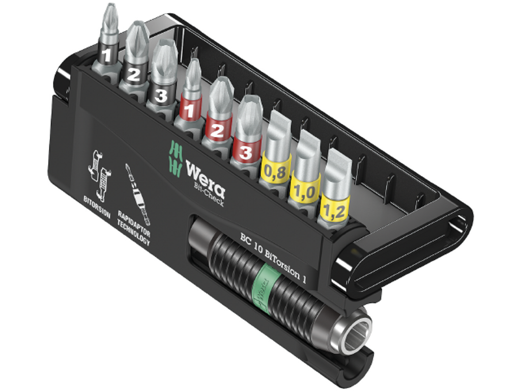 - 9 st BiTorsions bits för raka spår och för Phillips och Pozidriv kryss-spår ingår också.