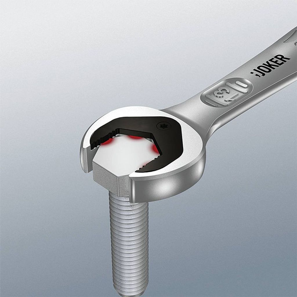 Joker Spärrnyckeln kan tack vare den unika metallplattan i käken minska risken för att tappa muttrar och bultar. Weras Jokernycklar har en vinkel på 30 grader vilket gör att nyckeln lättare kan användas i trånga utrymmen där många andra spärrnycklar inte kommer åt.