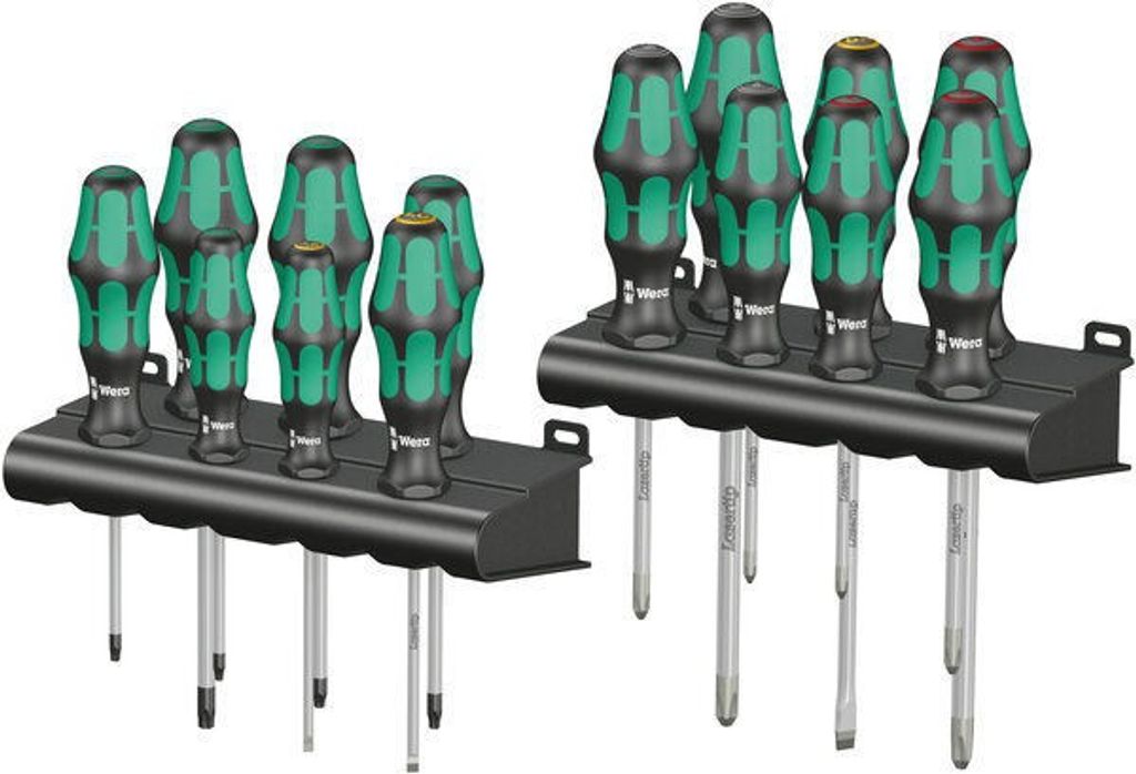 Wera Kraftform Big Pack 300 är en omfattande skruvmejselsats med 14 högkvalitativa skruvmejslar för spår-, Phillips-, Pozidriv- och TORX®-skruvar. Skruvmejslarna har ergonomiska Kraftform Plus-grepp, vilket ger hög arbetshastighet och komfort. Lasertip-teknik på flera mejslar skapar en mikroskopiskt uppruggad yta som biter sig fast i skruvskallen och minskar risken för att verktyget glider. Take it easy-färgkodning gör det enkelt att snabbt identifiera rätt verktyg. Mejslarna har även sexkantigt rullstopp, vilket förhindrar att de rullar iväg. Levereras med ett praktiskt förvaringsrack.