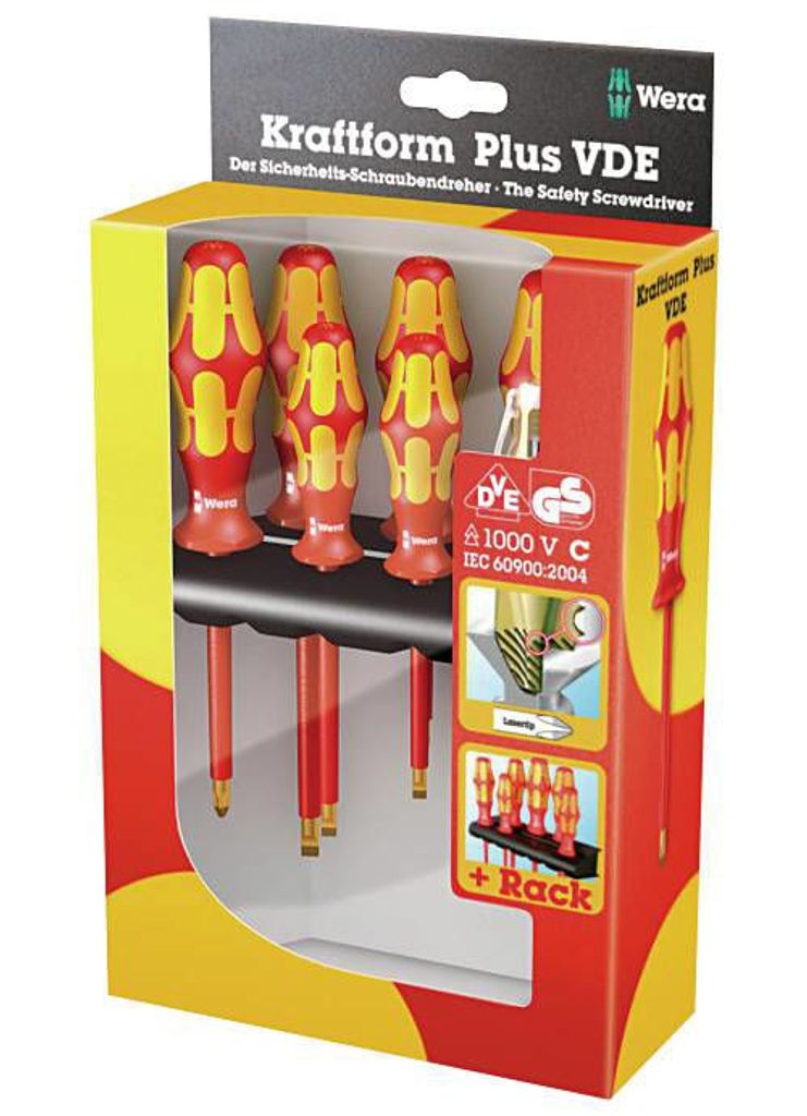 Sats om 6 skruvmejslar och en spänningsprovare. Med isolering enligt IEC 60900 för arbete under spänning upp till 1000 volt (av speciellt utbildad personal).