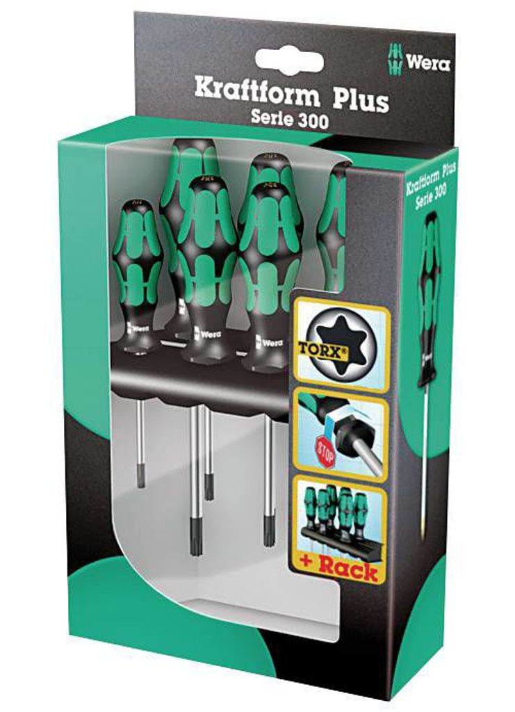 Sats om 6 Torx-skruvmejslar. För invändiga spår enligt Torx-systemet. Rund förnicklad klinga. Kraftigt handtag typ Kraftkant av två olika material - hård plast med gummiinlägg för bästa handgrepp.