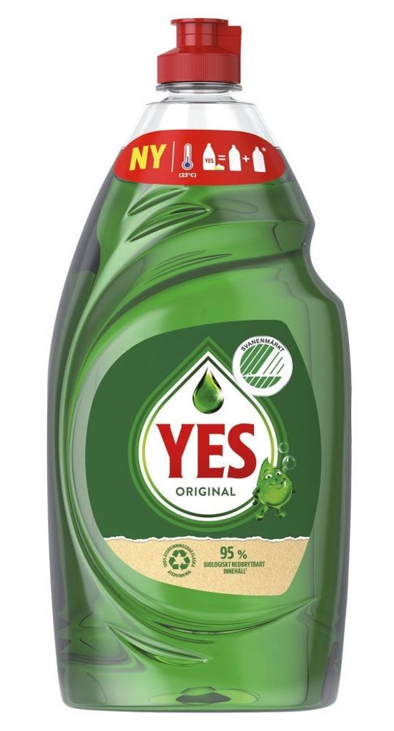 YES Original Diskmedel erbjuder effektiv rengöring med sin kraftfulla och rika formel som effektivt bekämpar ingrodda matrester. Det är ett miljövänligt val med 95% biologiskt nedbrytbara ingredienser, Svanenmärkt och förpackat i en återvinningsbar flaska. Dessutom fungerar det utmärkt i kallt vatten, vilket möjliggör energibesparingar vid diskning.