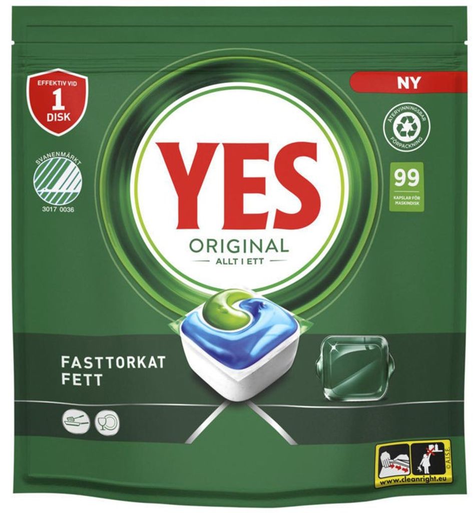1 förpackning med 99 Yes Original All in One diskmaskinstabletter