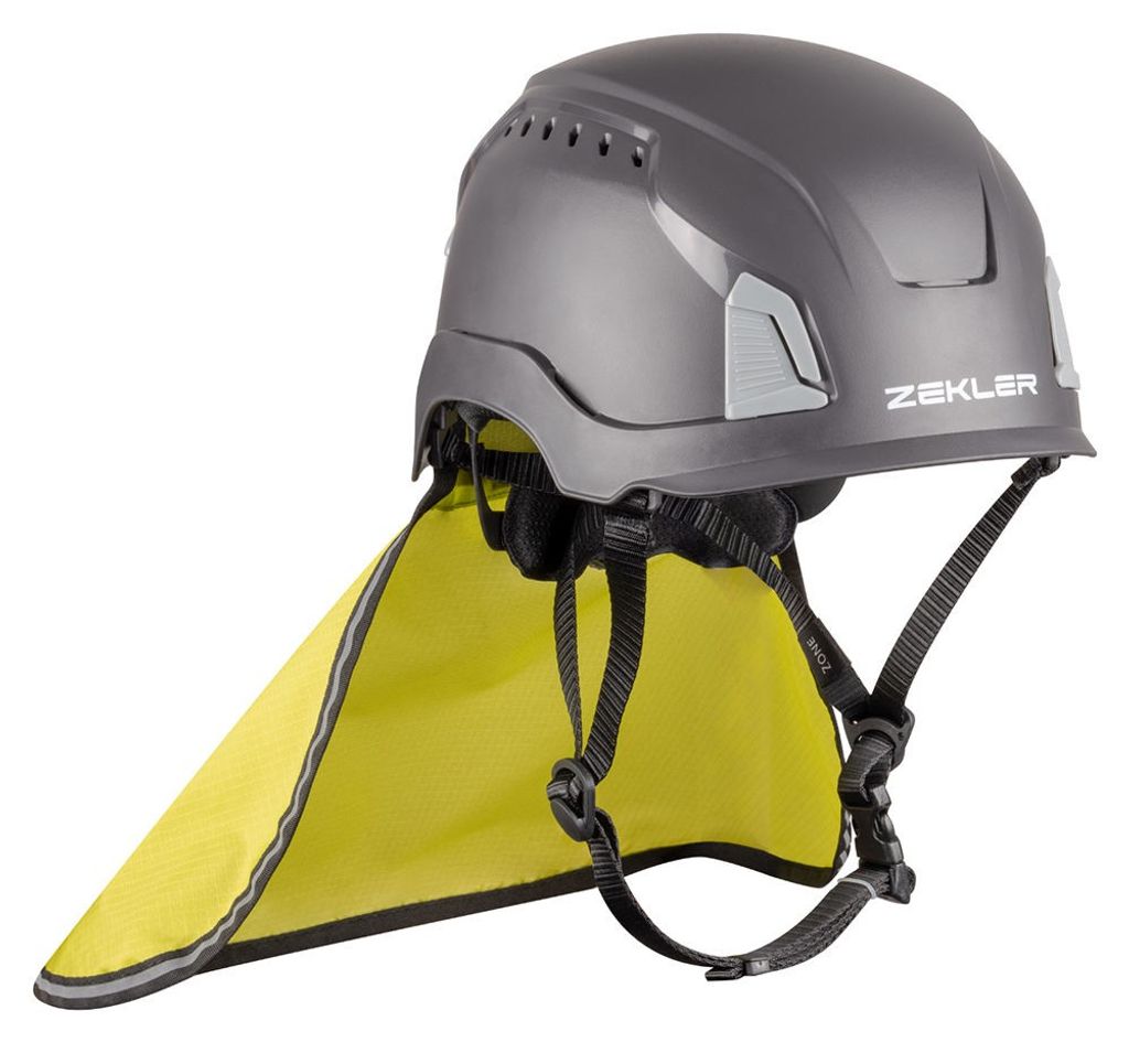 Zekler Zone nackskydd i hivis-utförande som passar till Zekler skyddshjälm Zone. Enkel att fästa medf klickfästen i baksidan på hjälmen.