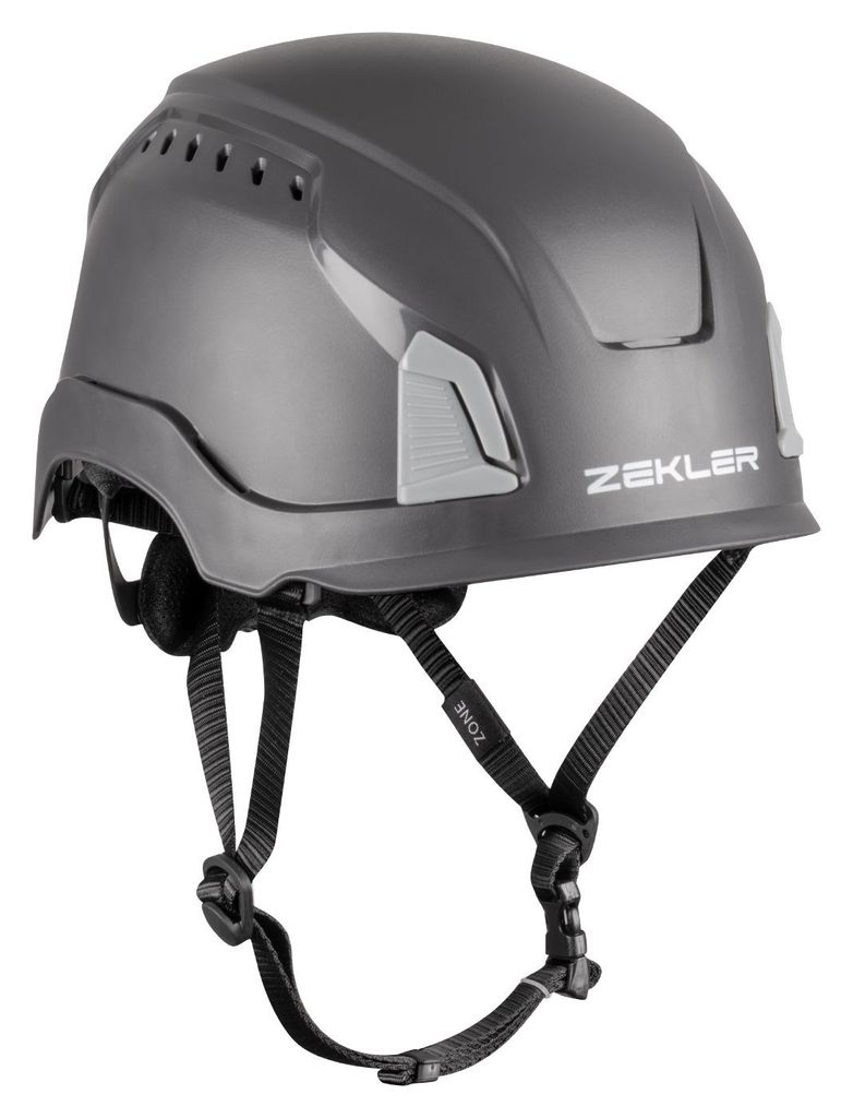 Zekler Zone är en bekväm, modern och lätt grå skyddshjälm med integrerade klickfästen för snabb montering av tillbehör. De tolv lufthålen ger en effektiv ventilation för en behaglig arbetsmiljö. Hjälmen är certifierad både för bygg/industri och som klätterhjälm så den lämpar sig både för arbete på mark och arbete på hög höjd.